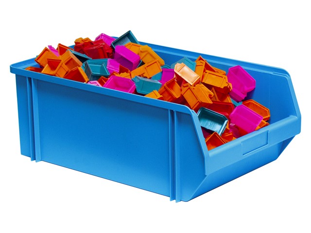 Caja de plástico apilable con abertura frontal PLASTIBOX | Dim.: 490x300x180h mm. | Color: azul