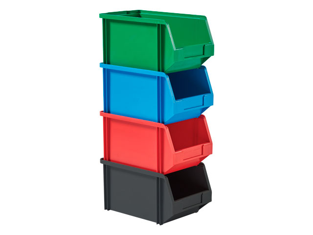 Caja de plástico apilable con abertura frontal PLASTIBOX | Dim.: 240x150x130h mm. | Color: verde