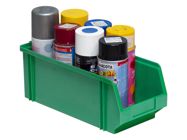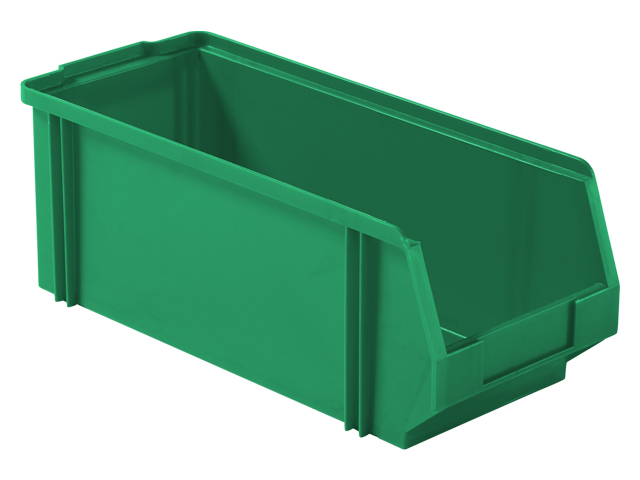 Caja de plástico apilable con abertura frontal PLASTIBOX | Dim.: 340x150x130h mm. | Color: verde
