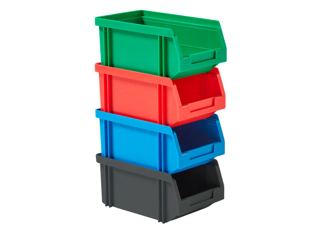 Caja de plástico apilable con abertura frontal PLASTIBOX | Dim.: 160x105x75h mm. | Color: rojo