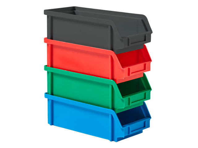 Caja de plástico apilable con abertura frontal PLASTIBOX | Dim.: 240x105x75h mm. | Color: verde