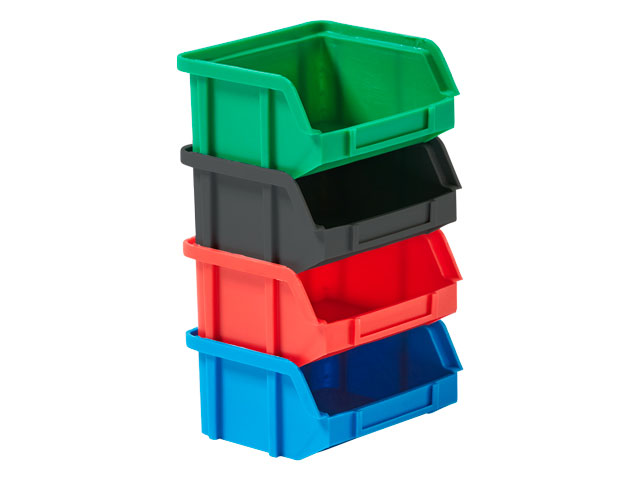 Caja de plástico apilable con abertura frontal PLASTIBOX | Dim.: 90x105x50h mm. | Color: azul