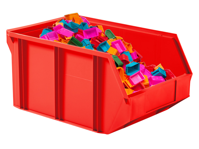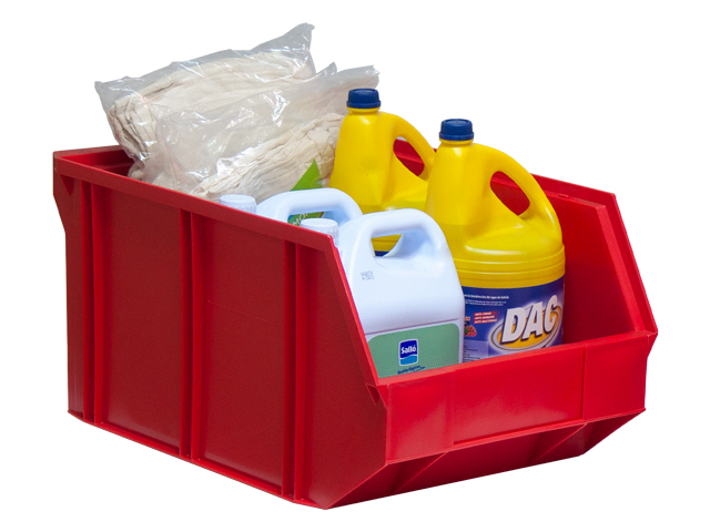 Caja de plástico apilable con abertura frontal PLASTIBOX | Dim.: 600x400x300h mm. | Color: rojo