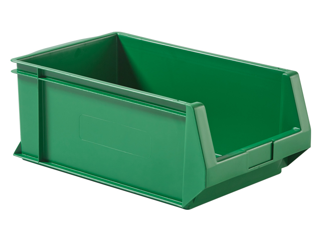 Caja de plástico apilable con abertura frontal PLASTIBOX | Dim.: 500x310x200h mm. | Color: verde