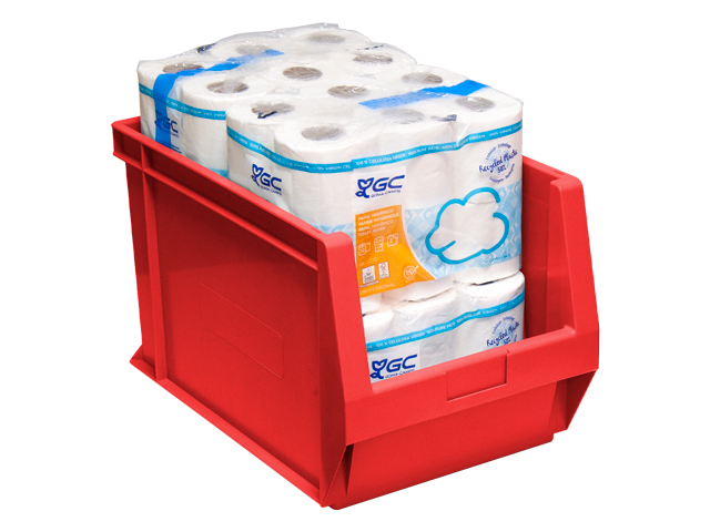 Caja de plástico apilable con abertura frontal PLASTIBOX | Dim.: 500x310x300h mm. | Color: rojo
