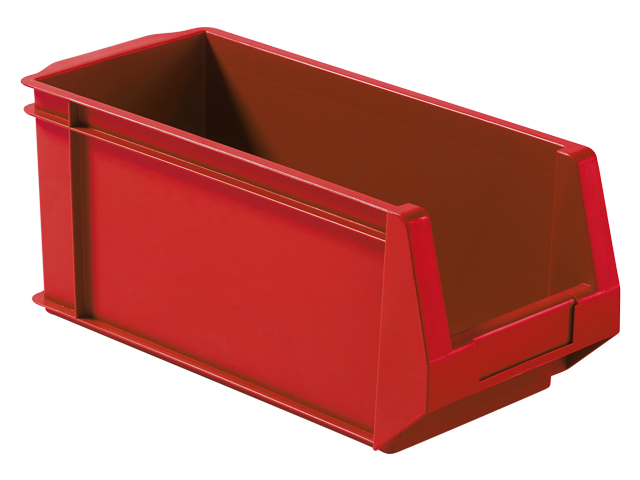 Caja de plástico apilable con abertura frontal PLASTIBOX | Dim.: 350x160x150h mm. | Color: rojo