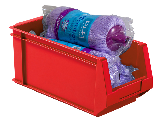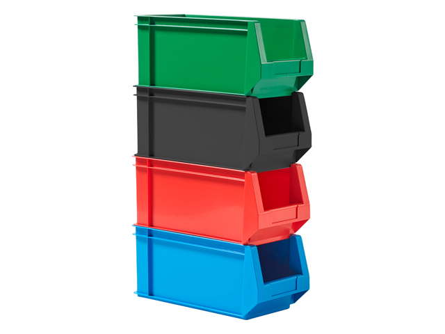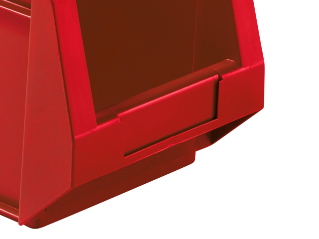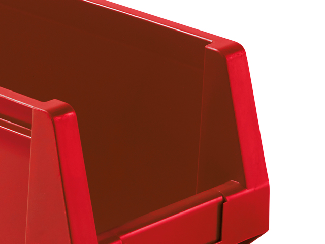 Este modelo de caja plástica apilable con abertura frontal PLASTIBOX es el complemento perfecto en estanterías metálicas con estantes-guía de carga ligera, las cuales permiten una distribución vertical del material almacenado aprovechando al máximo el espacio y proporcionando un acceso al material rápido y ágil.