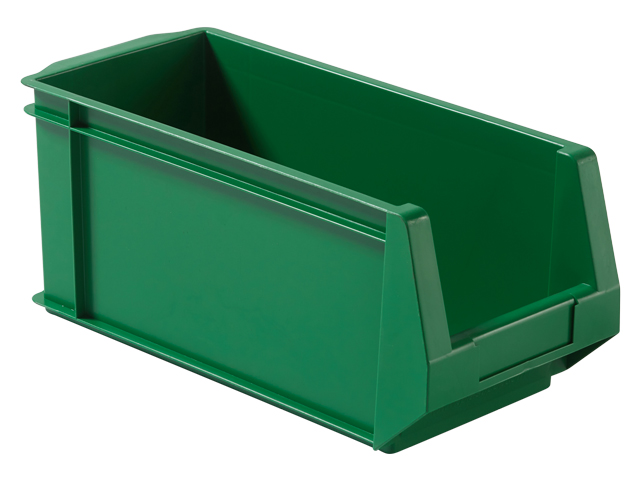Caja de plástico apilable con abertura frontal PLASTIBOX | Dim.: 350x160x150h mm. | Color: verde