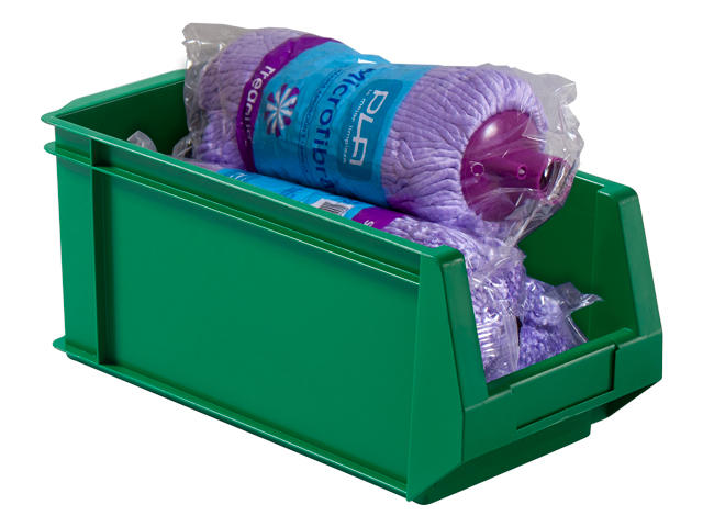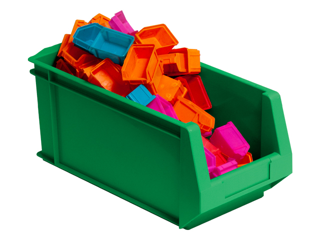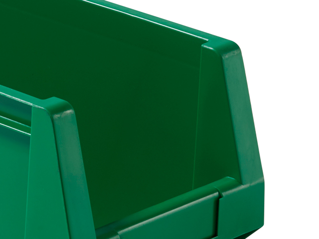 Este modelo de caja plástica apilable con abertura frontal PLASTIBOX es el complemento perfecto en estanterías metálicas con estantes-guía de carga ligera, las cuales permiten una distribución vertical del material almacenado aprovechando al máximo el espacio y proporcionando un acceso al material rápido y ágil.