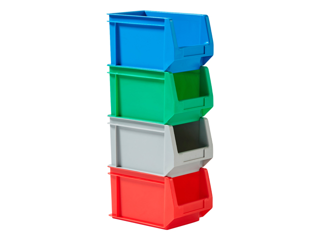 La caja plástica apilable PLASTIBOX K-300/4H es ideal para organizar componentes en talleres, almacenes o montajes. Fabricada en polipropileno es resistente y duradera, con un diseño práctico para facilitar el acceso y el almacenamiento.