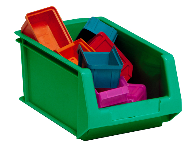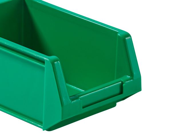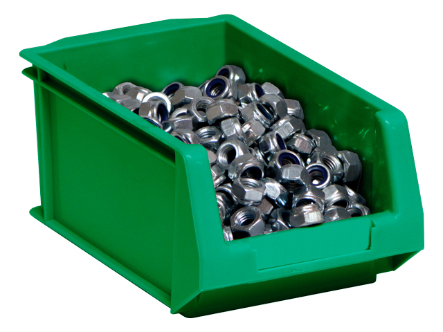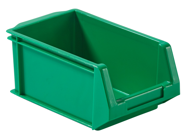 Caja de plástico apilable con abertura frontal PLASTIBOX | Dim.: 168x100x75h mm. | Color: verde