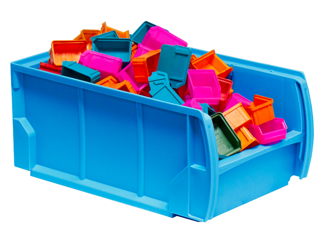Destaca por su versatilidad y se convierte en un cajón ideal para el almacenaje de piezas pequeñas gracias a sus separadores transversales que permiten guardar diferentes tipos de material y artículos en su interior. Completan la gama de accesorios la tapa frontal y el tope trasero que aseguran la carga en estanterías metálicas con estantes-guía o estanterías metálicas de carga ligera con estantes lisos.
