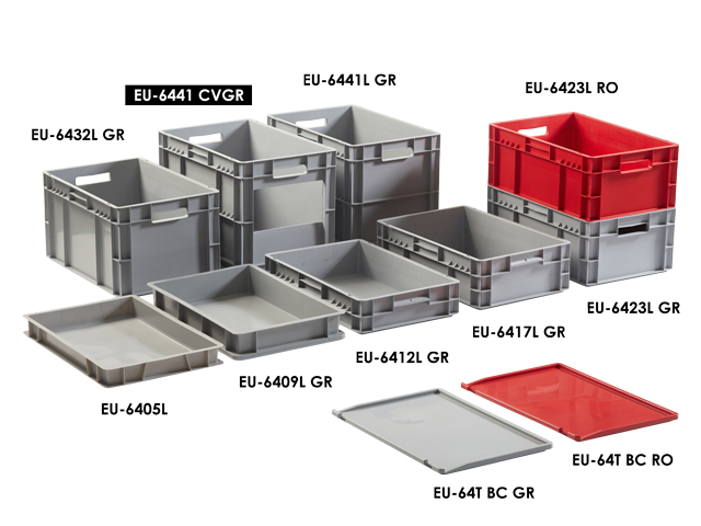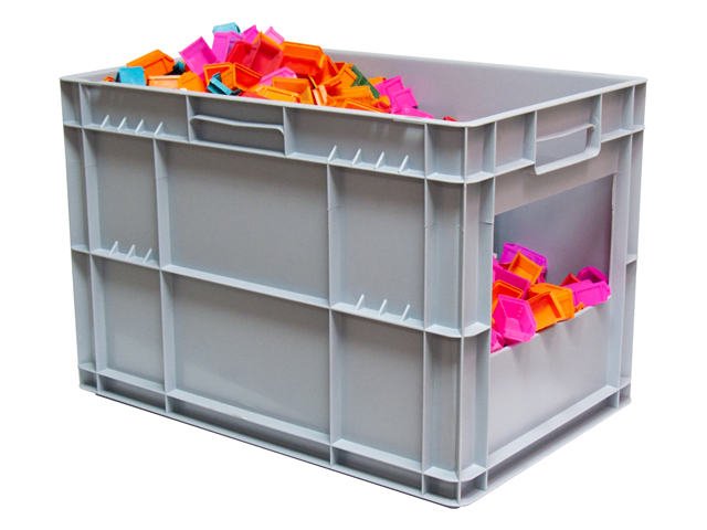 Caja de plástico apilable con ventana Norma Europa EUROBOX | Dim.: 600x400x410h | Color: gris