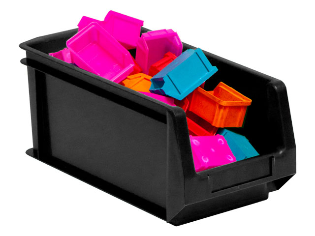 La caja plástica apilable PLASTIBOX K-300/4HL ECO es ideal para organizar componentes en talleres, almacenes o montajes. Fabricada en polipropileno reciclado, es resistente, duradera y ecológica, con un diseño práctico para facilitar el acceso y el almacenamiento.