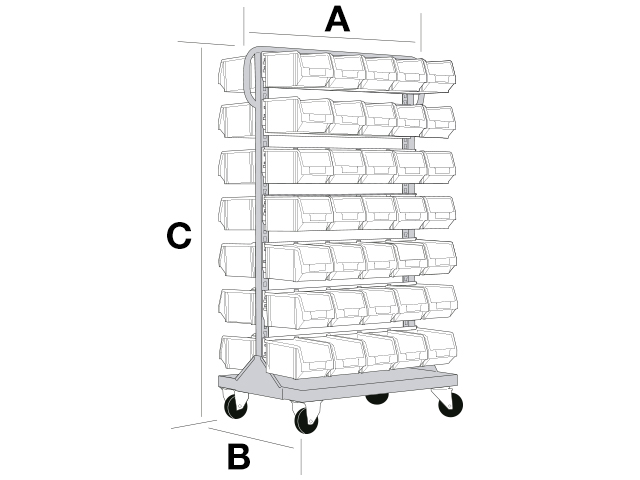 Carro métalico ROLLIBOX para cajas PLASTIBOX (incluidas) | Dim.: 785x540x1400h mm. | Color: rojo RAL 3001