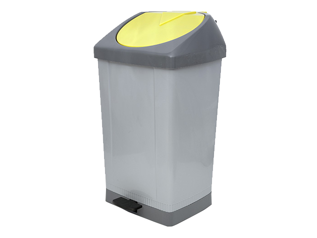 Papelera de plástico con tapa y pedal | Dim.: 400x430x730h mm. | Color: gris/amarillo